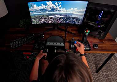 ByteSpeed’s multi-purpose flight simulation solution features a high-end PC that is powerful enough to run Flight Simulation software, as well as many other high-end applications (including STEM, AutoCAD, Adobe, and more). We can help you choose customized flight-sim gear to meet the needs of your aviation program. More info below.