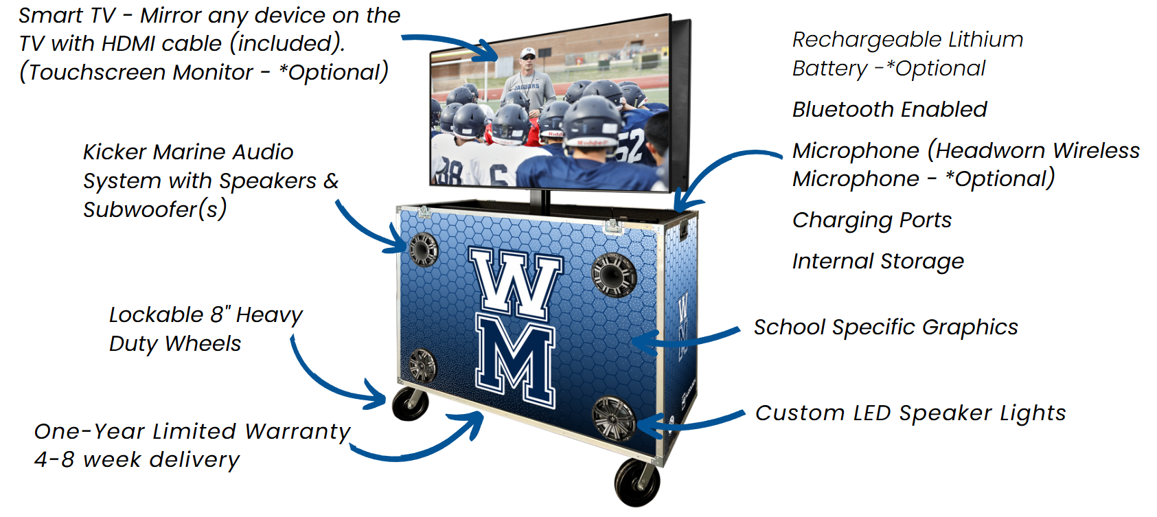 The Huddlbox CORE is a budget-friendly model, ideal for sideline replay systems. While it doesn't feature a sound system, it delivers reliable performance and makes sideline setup a breeze.