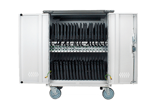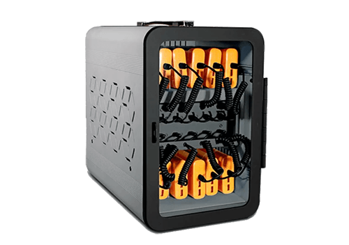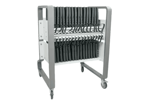 The Elevate line of USB-C charging carts eliminates the need to wire carts with AC adapters and creates a better experience for teachers and students. Powered by Quick-Sense USB-C PD charging, Elevate carts intelligently distribute power to your devices without using AC adapters. These carts are good solutions for sharing device sets between rooms, 1:1 in-class technology programs, and enable easy transportation of devices for summer maintenance.