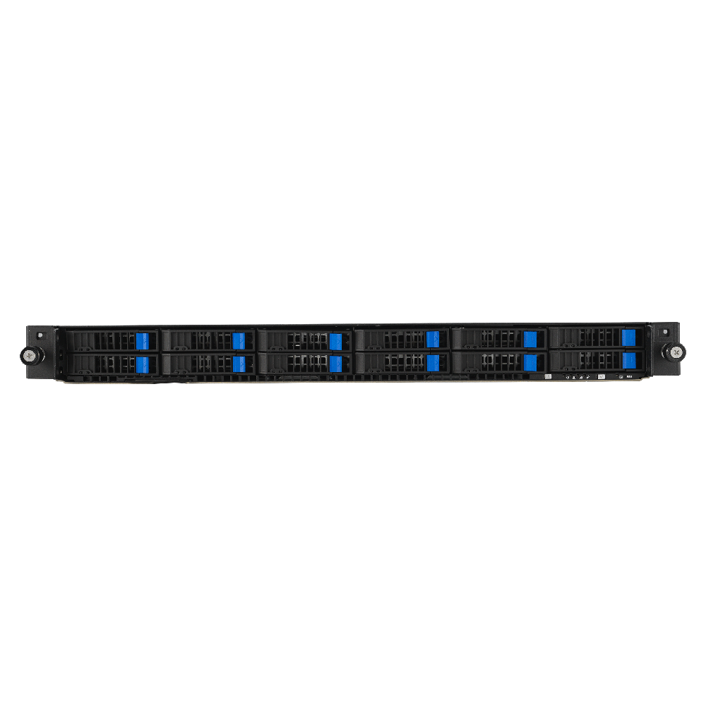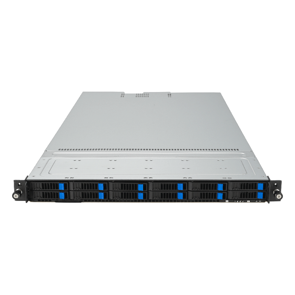 Up to 12 all-flash NVMe drives on the front panel, and three PCIe 5.0 slots for higher bandwidth and system upgrades.