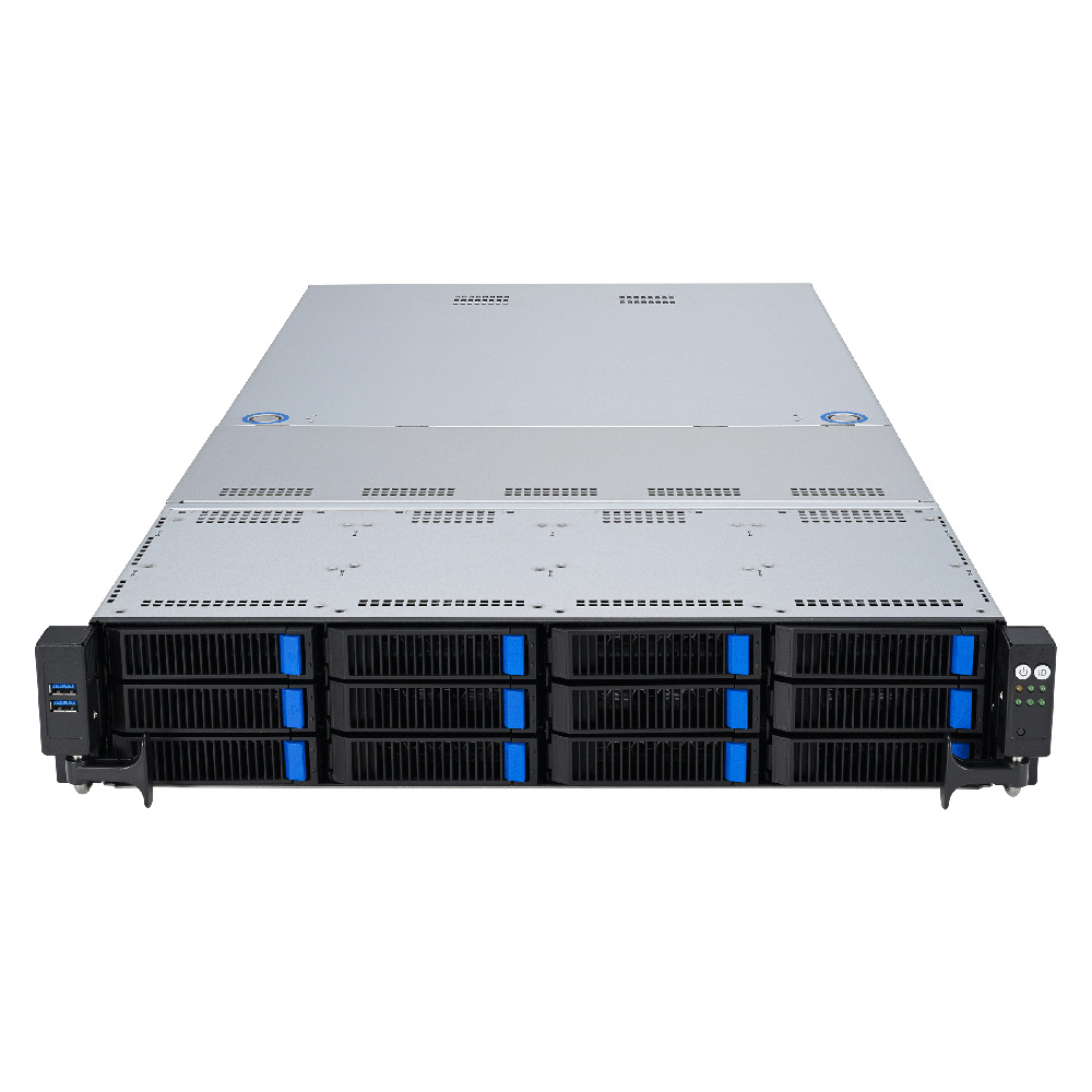 The ByteSpeed 2U Server RS521A-E12 provides powerful performance, powered by AMD EPYC 9005 processors with 192 Zen 5c cores, 12-channel, up to 5200 MHz DDR5 and support for a maximum TDP of up to 400 watts. It features scale-up storage and expansion design, with up to 12 all-flash NVMe drives on the front panel, two drives in the rear panel, and five PCIe 5.0 slots for higher bandwidth and system upgrades.