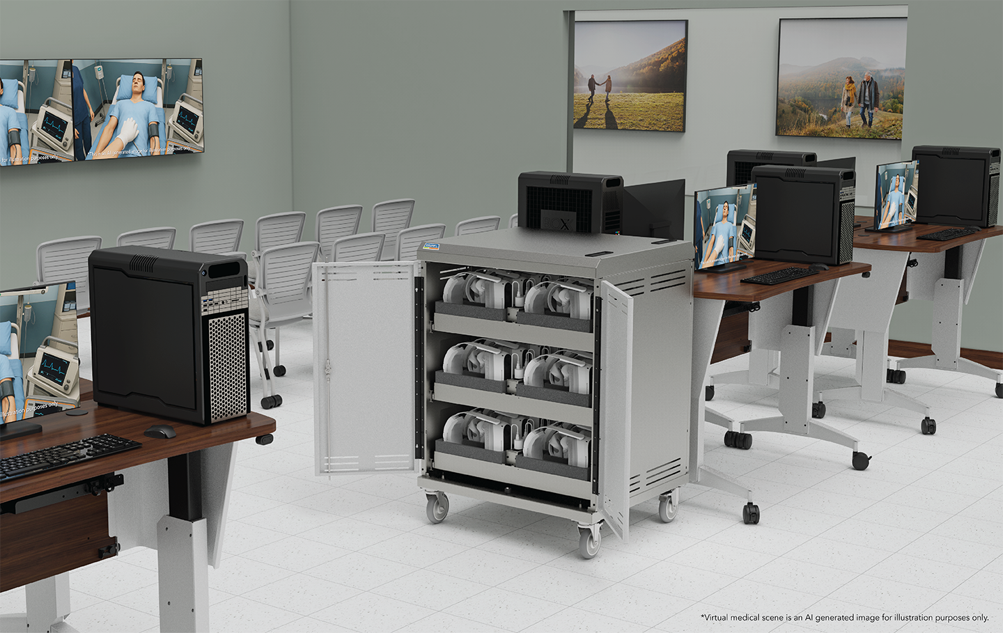 The Immersion XR Cabinet is a secure, space-saving solution for storing and charging up to 10 VR headsets and controllers. Its modest footprint fits easily into classrooms, labs, or training environments, while the cabinet’s design provides ample access to devices and cabling. Purpose-built compartments keep gear organized, protected, and ready for use.